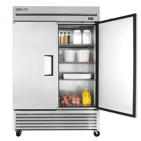 You are viewing a brand new commercial stainless steel True T-49-HC 2 Door Solid SS Cooler Refrigerator that is made in the USA. It is brand new in the original packaging. It measures 54-1/8″ W x 29-1/2″″ D x 78-3/8″ H. Adjustable thermostat with digital controls that holds 0.55C to 3.33C. 6 adjustable wire rack shelves included. LED lighting with self closing doors. 115 Volt Plug. These sell new for $8,900+. We also sell other new models and have financing options. Our Clearance Warehouse is located in the Foothills Industrial Park #5, 6613 – 44th Street SE, Calgary, AB. Open Monday to Friday 9am to 5pm.