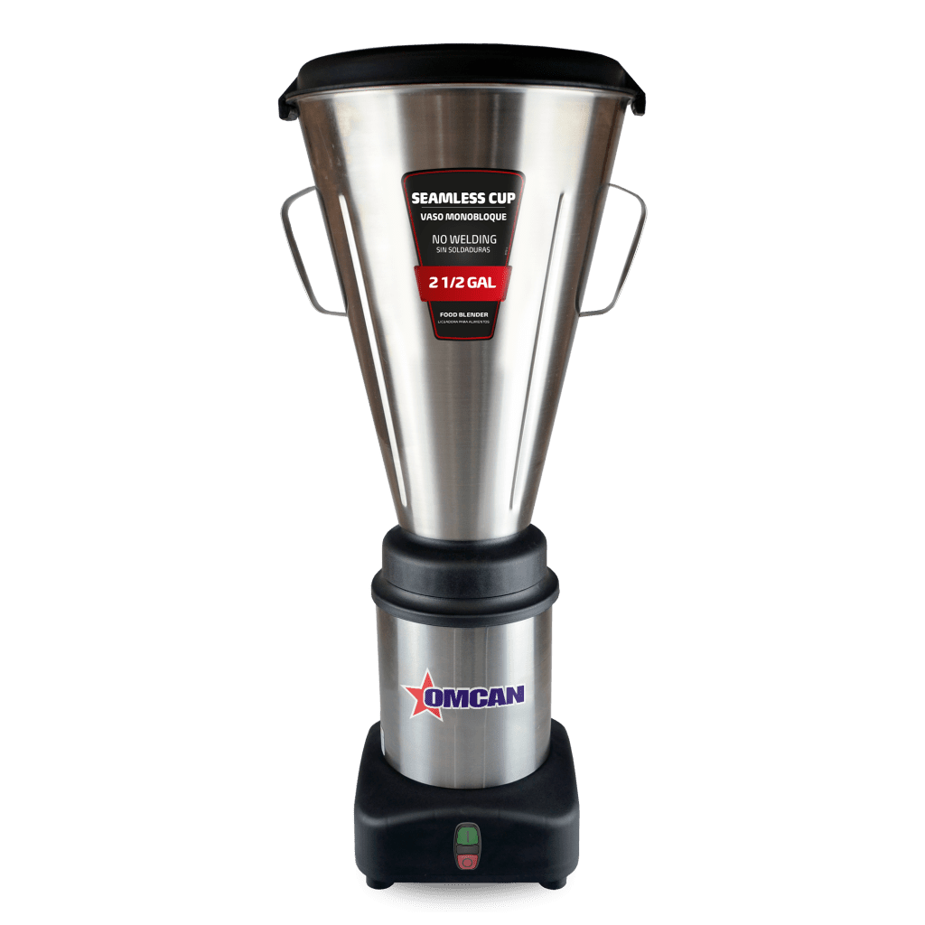 Omcan Countertop Blenders are equipped with a stainless steel container, blades, and a plastic lid, designed specifically for commercial establishes.