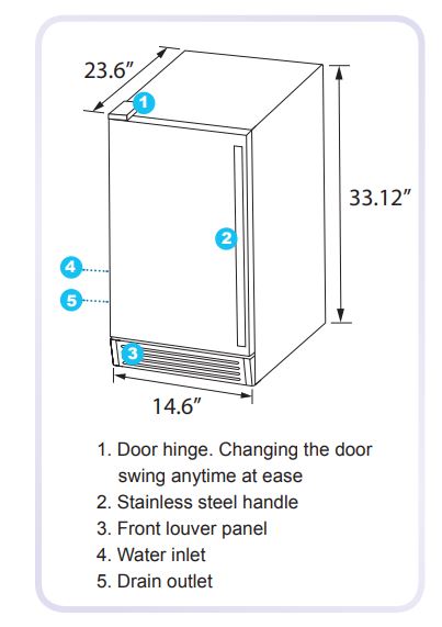 This energy efficient ice maker is air-cooled and equipped with excellent insulation to help maintain its cold temperatures. Its attractive stainless steel door and black painted cabinet help the unit blend seamlessly in with existing décor whether it’s installed under the counter or on its own. For your convenience, the door also features reversible hinges allowing you to change which side it opens on at any time.