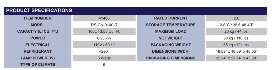 CAPACITY: 100L / 3.53 Cu. Ft.
