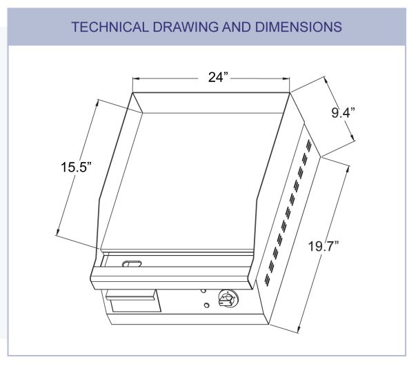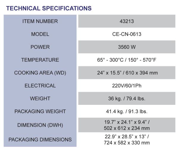 COOKING AREA (WD) 24″ x 15.5″ / 610 x 394 mm