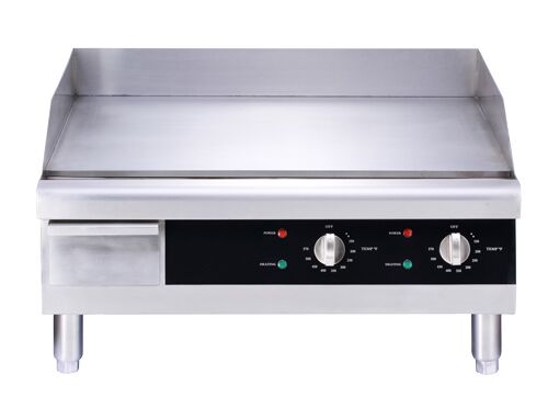 This Counter Top Electric Griddle is made up of durable stainless steel construction that is suitable for commercial use. Designed to be safe and energy efficient. Features over heating protection and have a temperature range of 150-570°F (65-300°C).