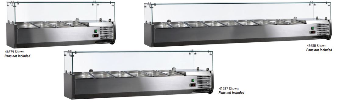 Keep extra ingredients and fixings close at hand with the Omcan 47″ Refrigerated Topping Rail with a 4-pan capacity. This topping rail is ideal for restaurants, pizzerias, sandwich shops, hotels, and other commercial business with food prep stations.
