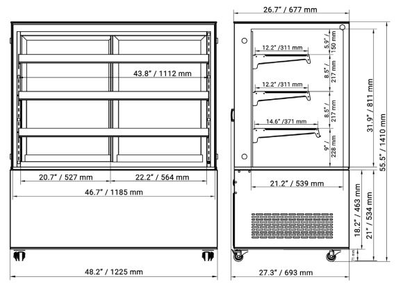 Omcan’s Square Glass Floor Refrigerated Display Case provides an economical solution for displaying your products. Features an interior lighting under each shelves as well as digital temperature controller for easy usage.