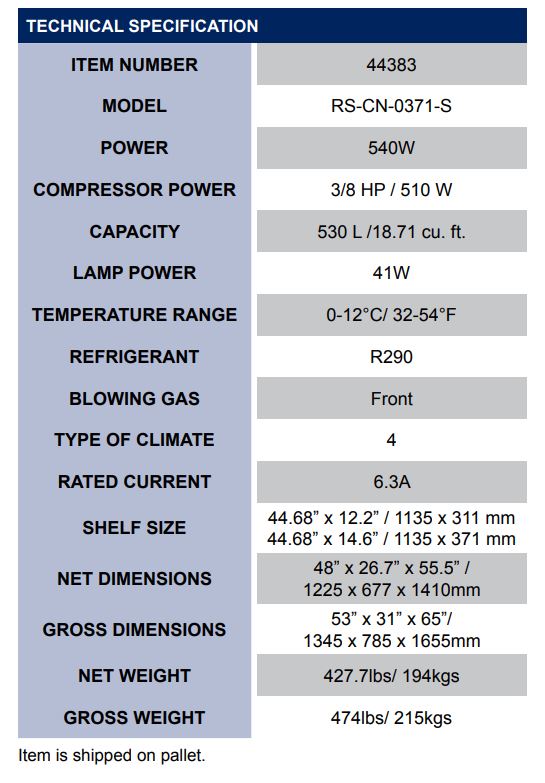 NET WEIGHT: 427.7 lbs / 194 kgItem is shipped on pallet.>>This equipment is intended for use in an indoor environment where ambient temperature and humidity do not exceed 32°C / 90°F and 55% relative humidity.