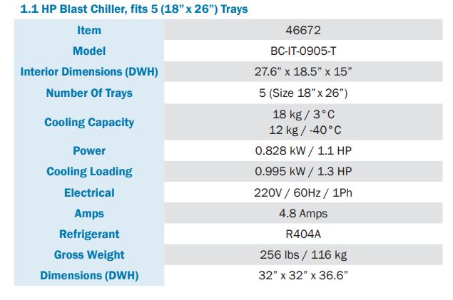Blast Chillers cool food rapidly by circulating cold air through the unit until temperature falls down to safe levels. These units are designed to quickly lower the temperature of foods to minimize bacterial growth ensuring food down through the danger zone within minutes compared to the hours it takes when stored in a refrigerator. Blast chillers also offer an advantage over traditional freezer by rapid freezing the food which produces fewer and smaller ice crystal resulting with minimal damage to the food. This improves the frozen food’s texture once it is reheated. Although they are typically more expensive than traditional refrigerators, they are mostly used in hotels, restaurants, and food operation business.
