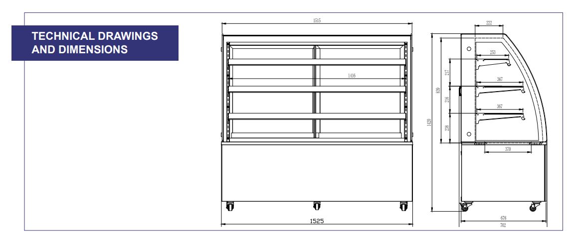 Omcan’s Curved Glass Floor Refrigerated Display Case provides an economical solution for displaying your products. Features an exterior tempered glass finish and interior LED lighting, this refrigerated showcase also has an automatic defrost system and fan cooling system. Easy to use and clean. Ideal for deli shops, cafes, and sandwich shops.