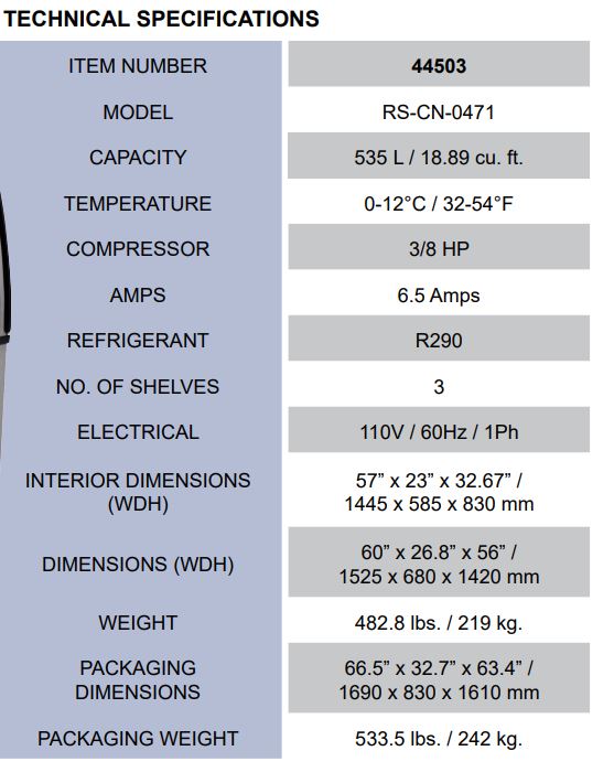 CAPACITY (L / CU. FT.): 535 L / 18.89 cu. ft.