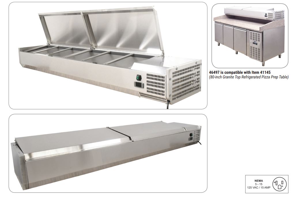 These Omcan refrigerated topping rails are the perfect option for your dessert or entrée toppings. They have a digital LED temperature display to aid you in keeping the food at the right temperature. The unit also has a stainless steel cover to keep your toppings fresh and clean.