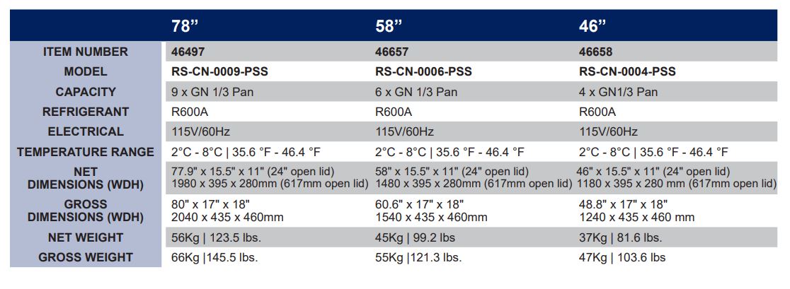 These topping centers are ideal for back of house, or front of house in a buffet line. Last but not least, these rails are compatible for 2.5″ to 4″ deep food pans.