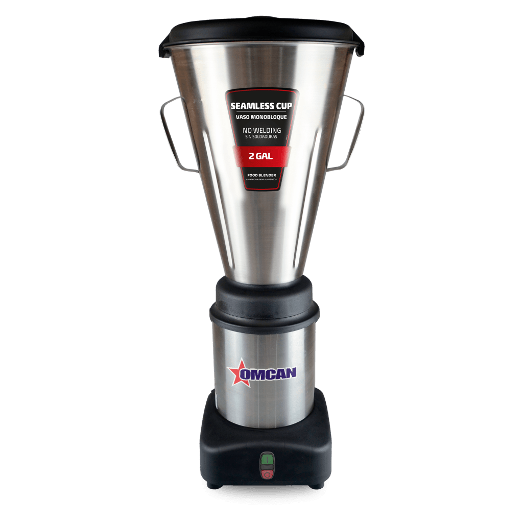Omcan Countertop Blenders are equipped with a stainless steel container, blades, and a plastic lid, designed specifically for commercial establishes.