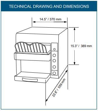 Designed to provide consistent heat with infrared heaters. Equipped with a variable speed control and adjustable top and bottom heat controls. Body is made of stainless steel. Comes with a high-limit switch which prevents overheating.