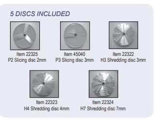 This vegetable cutter is easy to use for all types of fruits and vegetables. The cover is completely removable which allows for easy cleaning and changing of discs. Its high power ventilated motor meets all safety standards. Wide selections of discs are available.