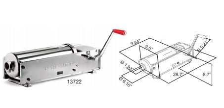 These manual sausage stuffers offer a wide selection of sizes and configurations for residential and commercial applications. The standard models have enameled steel sides. These sausage stuffers feature a two speed gearing system – one gear for sausage stuffing and one gear to return piston quickly to starting position. All models are supplied with a selection of stuffing funnels.