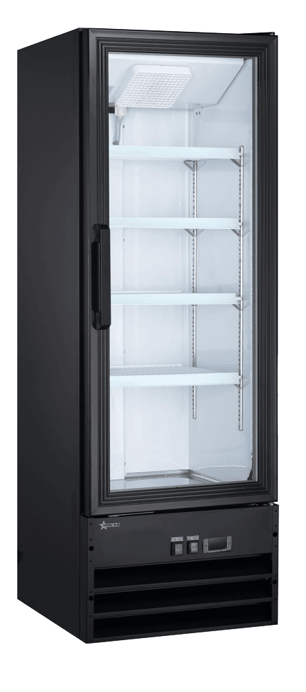 Omcan’s 22-inch single door glass refrigerator is perfect for your products, with the outside material made from painted steel. Its crystal clear, self closing door is perfect to see the products inside. It also features automatic defrosting and high density polyurethane insulation.
