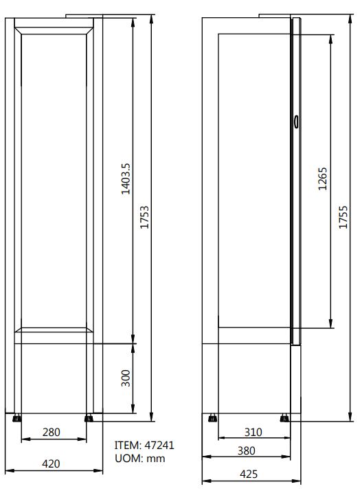 INTERIOR DIMENSIONS (WDH): 11″ x 12″ x 50″ | 280 x 310 x 1265mm