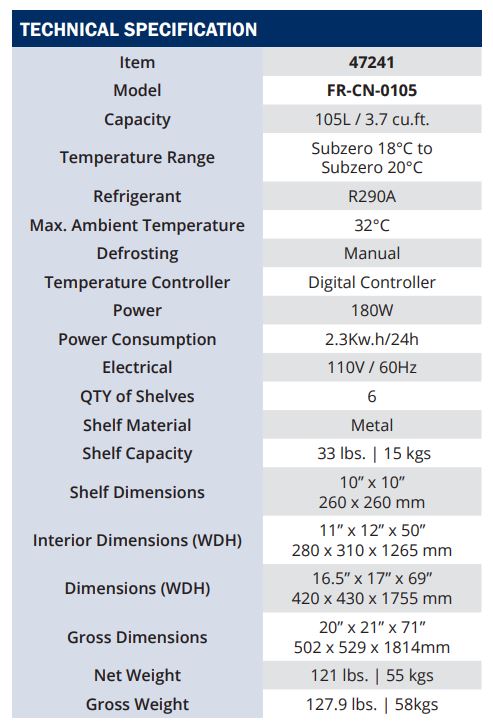 TEMPERATURE RANGE: Subzero 18°C to Subzero 20°C