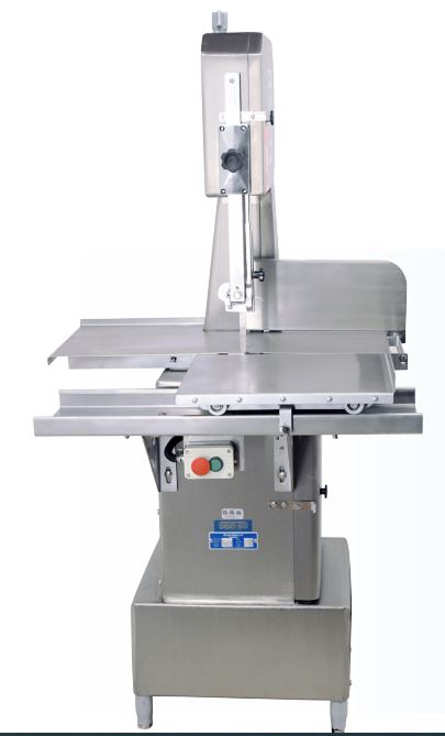 The table consists of a piece of stainless steel; equipped with four wheels that run on a rail for easy handling and cutting of meat.