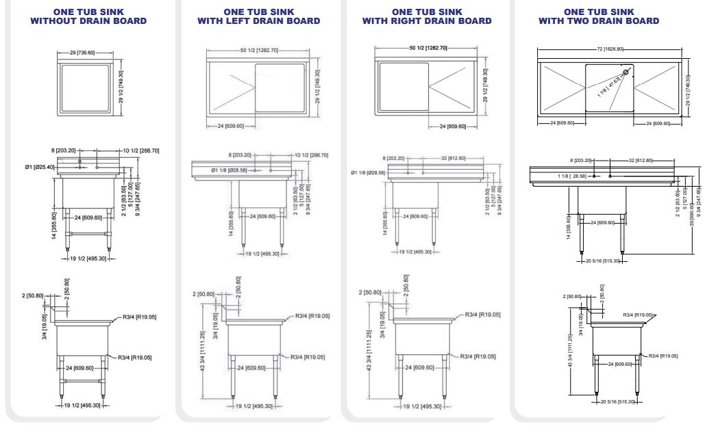 SINK SIZE: 24″ x 24″ x 14″