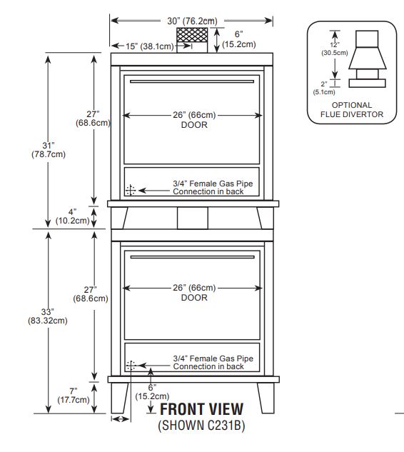 Peerless Double Stack Gas Bake Oven C231B-NL Features: