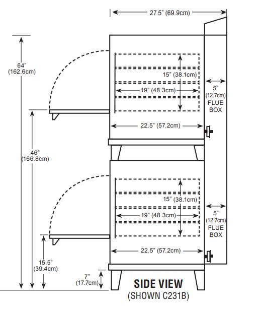 The C231B is the only double-door, eight-shelf bake oven on the market. Each oven boasts 1,824 sq. in. of cooking space for a total of 3,648 square inches. When you compare the cost per shelf or per square inch to other two- or three-shelf ovens, Peerless is by far the greatest value.