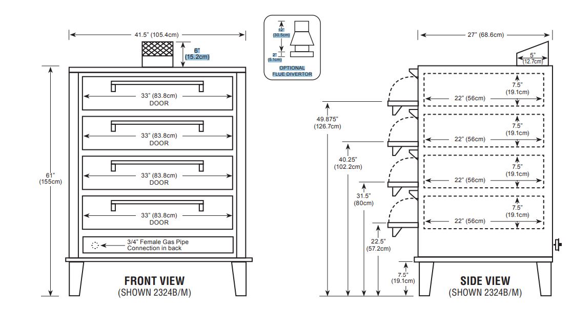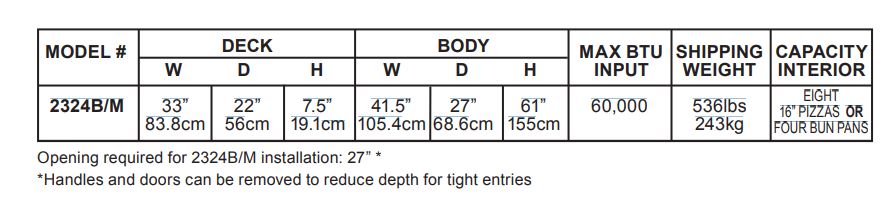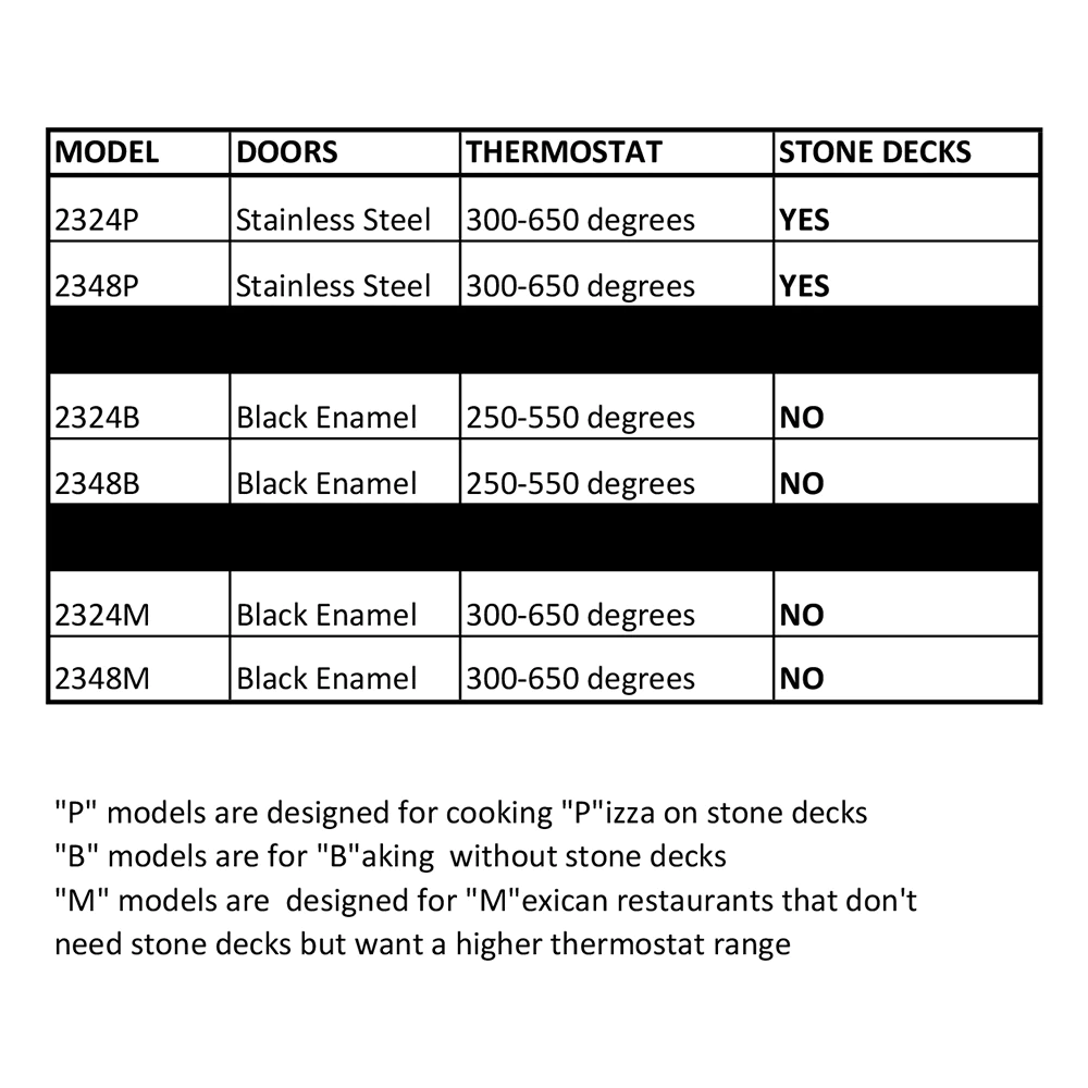 As with other Peerless ovens, Peerless 2324B models offer quality, performance and value. They come standard with black enameled finish, an aluminized interior, four steel decks and a 1-year Parts & Labor warranty.