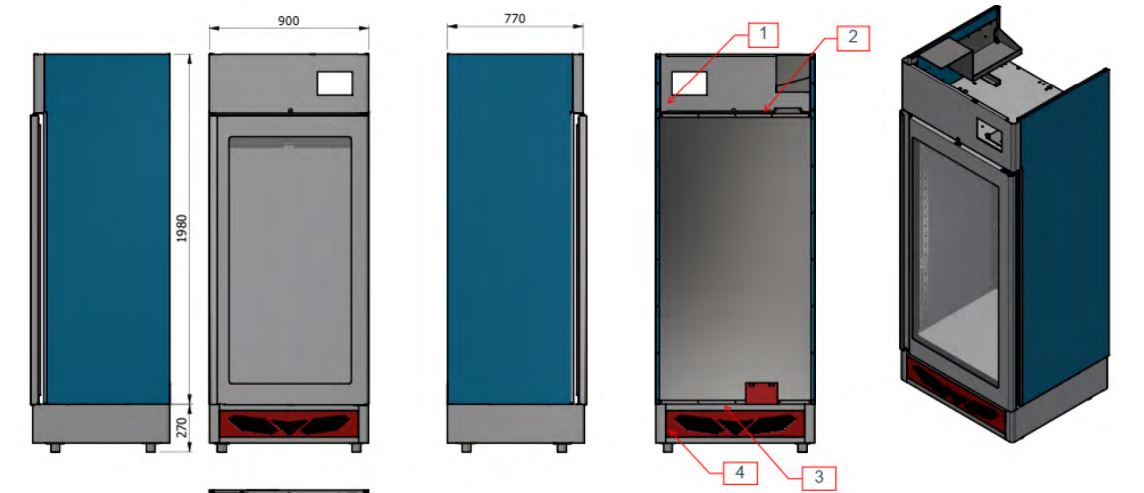 The Pesciugatore® cabinets and walk in cold rooms are built entirely of AISI 304 stainless steel with a scotch-brite finish both internally and externally to protect food contact and contamination. The Cabinets can be incorporated into furnishings or walls. The doors are completely in AISI 304 stainless steel; all have a large double-glazed glass with UV protection and are equipped with lock and key to allow use both in the laboratory and in the sales area. The large glass on the door allows you to monitor product on sight and in the sales area and is consequently an attractive Italian design display showcase. The four extendable stainless steel legs allow perfect stability. The exterior can be customized from a wide range of colors and coatings by our skilled Italian craftsmen.