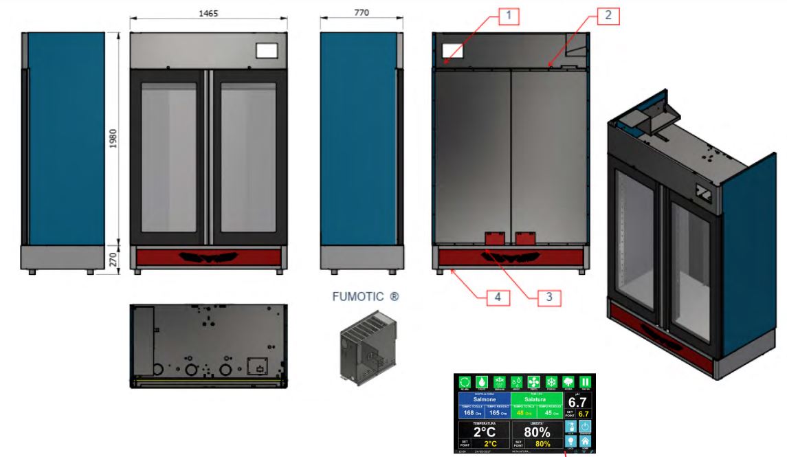The Pesciugatore® cabinets and walk in cold rooms are built entirely of AISI 304 stainless steel with a scotch-brite finish both internally and externally to protect food contact and contamination. The Cabinets can be incorporated into furnishings or walls. The doors are completely in AISI 304 stainless steel; all have a large double-glazed glass with UV protection and are equipped with lock and key to allow use both in the laboratory and in the sales area. The large glass on the door allows you to monitor product on sight and in the sales area and is consequently an attractive Italian design display showcase. The four extendable stainless steel legs allow perfect stability. The exterior can be customized from a wide range of colors and coatings by our skilled Italian craftsmen.