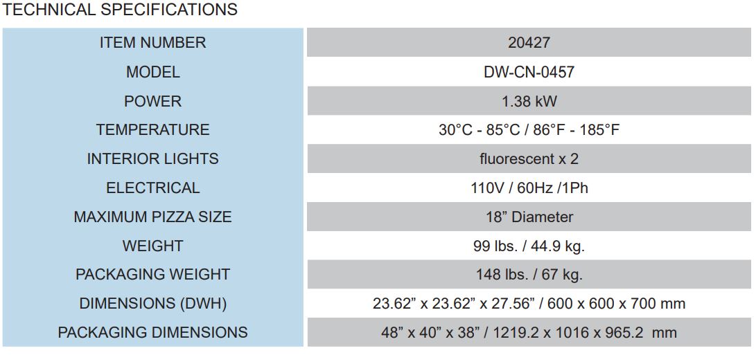 This pizza warmer is designed to merchandise product with even temperature and humidity. Excellent for fast-food restaurants, convenient stores, and supermarkets. Equipped with a revolving display and tempered glass panels to provide easy maintenance and durability.
