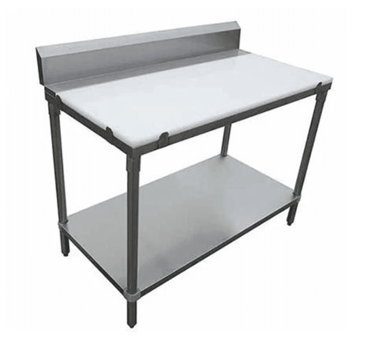This Solid Poly Top Work Table is a durable and versatile addition to any commercial kitchen. Measuring 30″ x 48″ x 36″, it features a solid poly top that is easy to clean and can support up to 50 lbs. The 6-inch back splash provides added protection against spills, while the stainless steel construction ensures longevity. Designed for various kitchen tasks, it includes non-slip feet for stability, making it ideal for food preparation and storage.