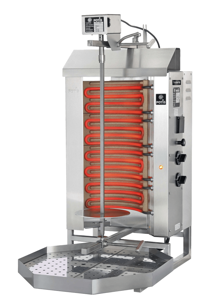Elevate your kitchen with the Potis Electric Vertical Broiler, designed to bring authentic doner kebab flavors right to your home. This gyro grill features top-notch attributes and precise control, making it easy to prepare delectable kebabs and Shawarma.