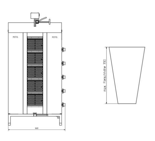 Elevate your kitchen with the Potis Doner Kebab Machine, designed to bring authentic doner kebab flavors right to your business. This gyro grill features top-notch attributes and precise control, making it easy to prepare delectable kebabs.