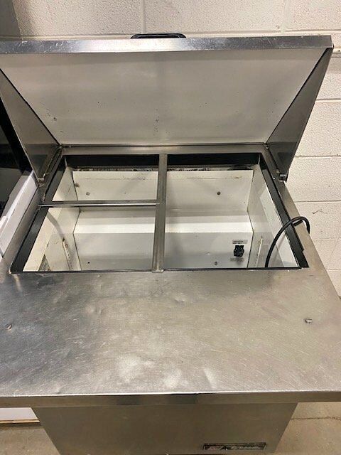 You are viewing a used 27″ wide Refrigerated Prep Table Cooler. This True TSSU-27-12M model has been tested and works well. It measures 27-9/16″ W x 34-1/8″ D x 46-15/32″ H. Power supply is 110V. These sell new for $4,000+. We also sell other new models and have financing options. Our Clearance Warehouse is located in the Foothills Industrial Park #5, 6613 – 44th Street SE, Calgary, AB. Open Monday to Friday 9am to 5pm.