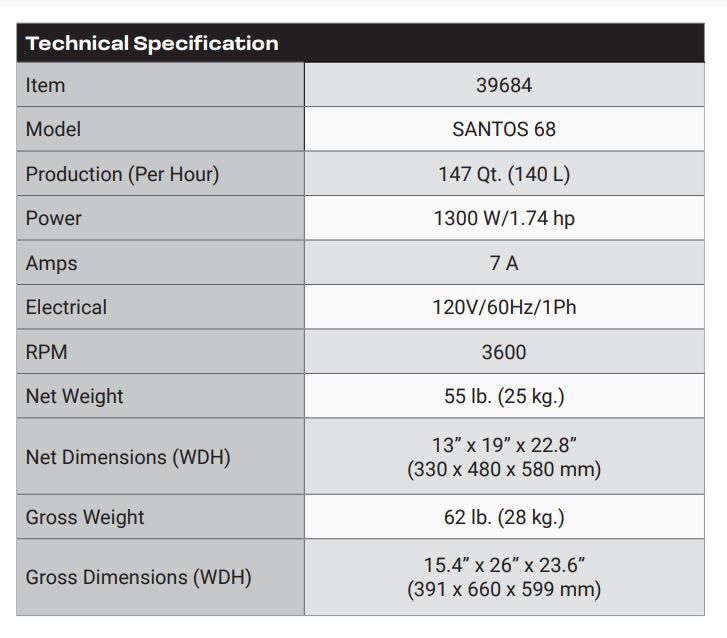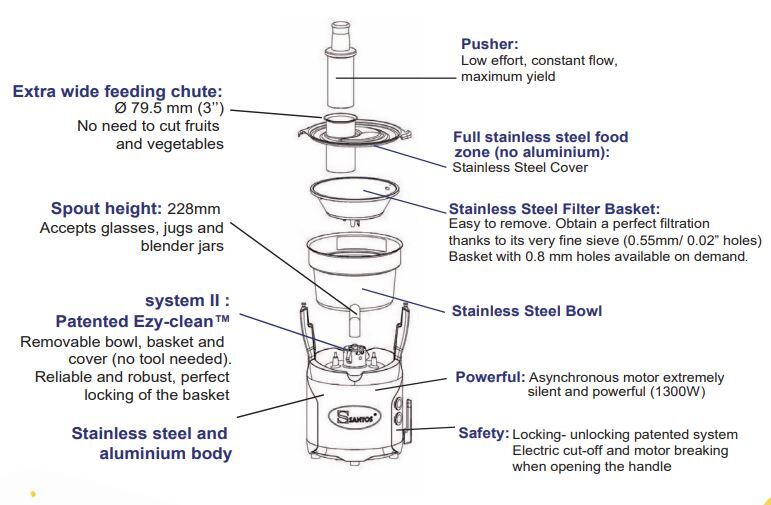 This new generation juice extractor ‘’Miracle Edition’’ 68 is the result of Santos’ 60 years of worldwide experience. More powerful, more robust, and easier to clean, this new-generation juice extractor is dedicated to juice bars, health food stores, hotels, bars, restaurants, cafeterias, ice cream shops, and institutions.