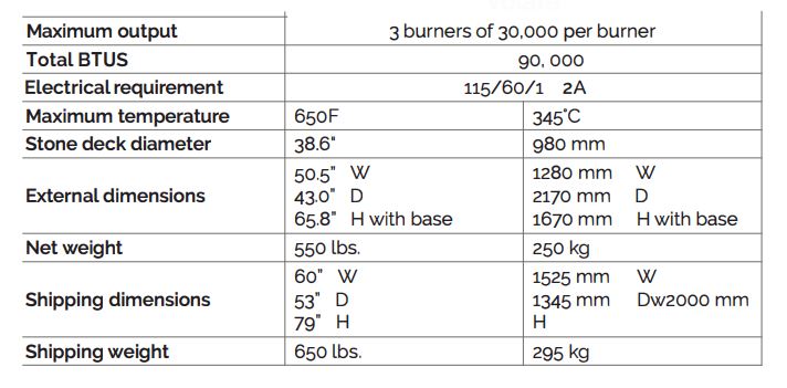 The front panel features dual-temperature display, an ON/OFF switch to control deck rotations, an emergency stop button, and separate switches for each burner to control the flow of gas and easily manage operations. The oven has been certified to meet all electrical, safety and sanitation standards of the North American market. Admired for its stunning appearance, performance and style, the Volare oven showcases a concept so far unparalleled in the foodservice industry. Guaranteed to bring your customers back for a second and third look and another meal! For the operator, you can embrace a return to cooking in confidence.