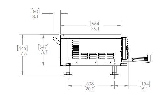 The Single Batch oven circulates impinged air at speeds of up to 50 mph to create high heat transfer rates and reduce cook time. The oven utilizes a variable speed blower, oscillating rack, and catalytic converter, resulting in minimal energy input, high food quality, and ventless operation.