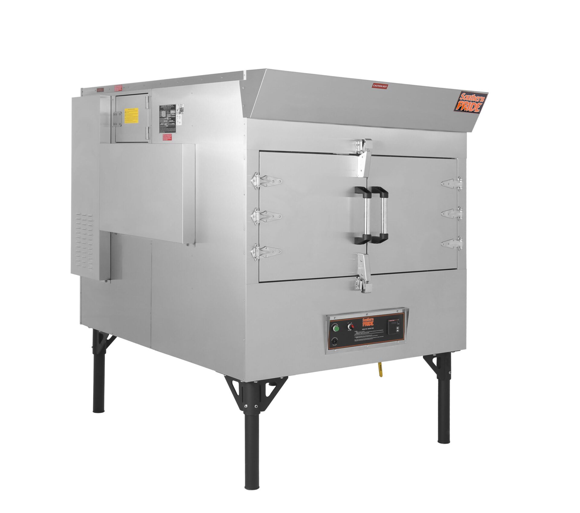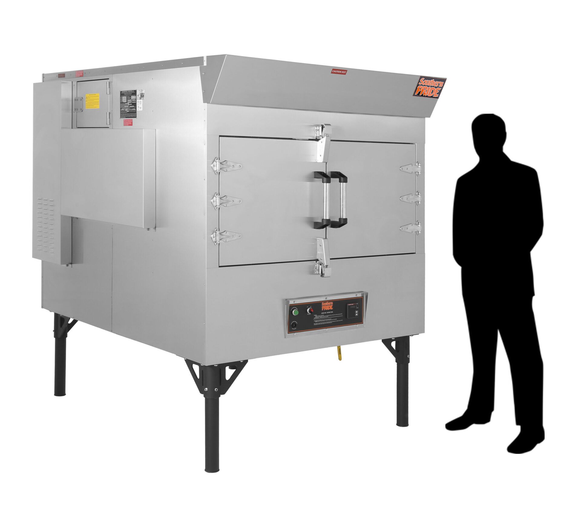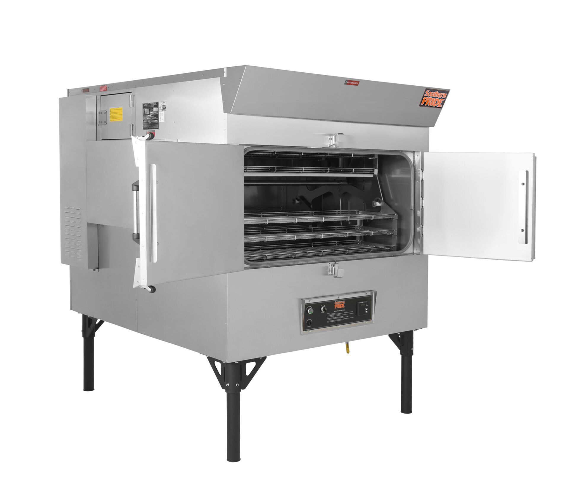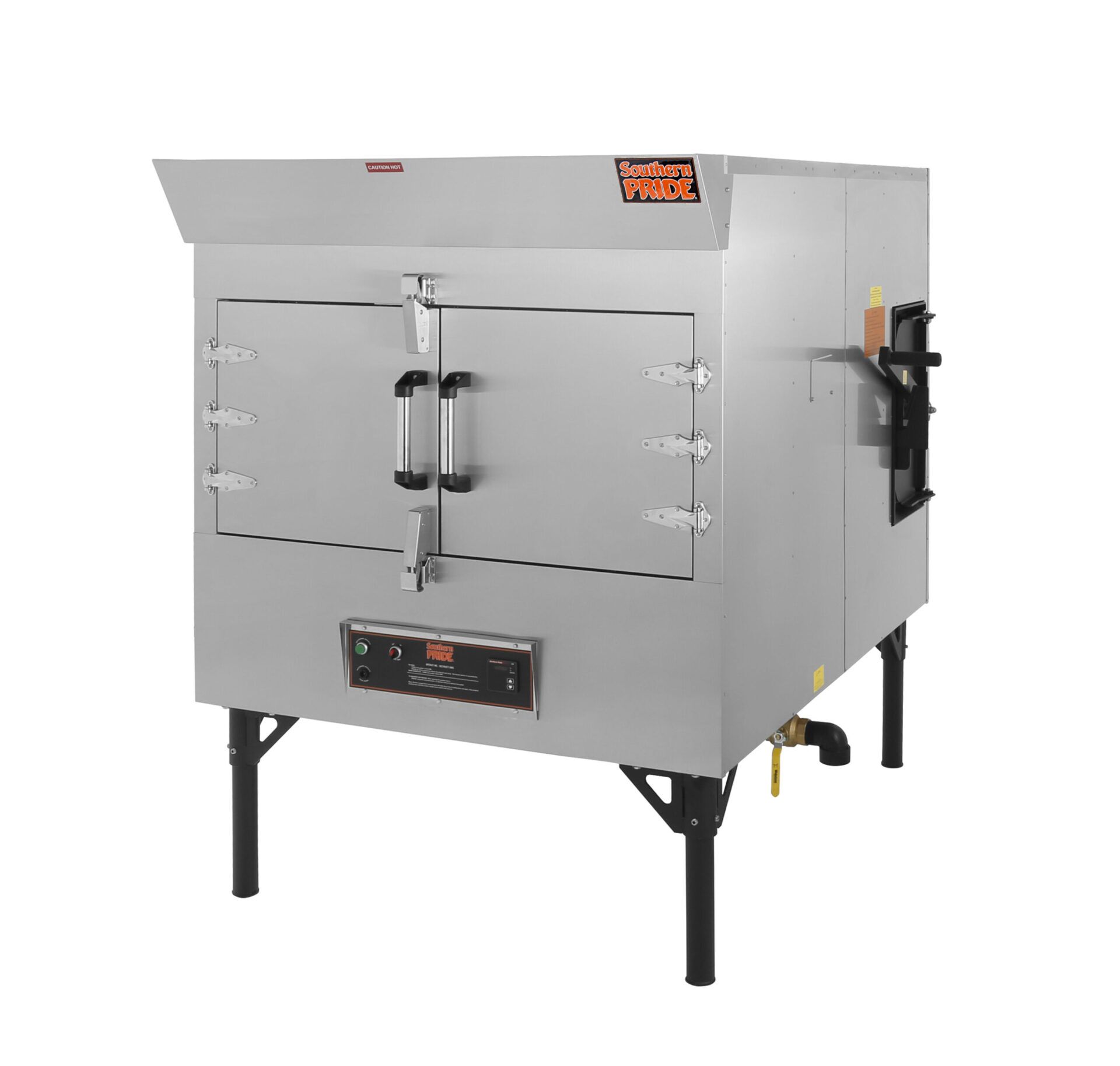 For high-quality, large-batch gas smoking and barbecuing, the Southern Pride SPK-500 stainless steel gas rotisserie smoker – 75,000 BTU is the perfect tool! The convection air system implements a 22 kW burner that ignites 2-3 fireplace-sized logs to heat the smoker cabinet and the firebox to the desired temperature needed to achieve maximum texture, aroma, and delectable flavors. The fan in the convection system draws smoke from the firebox and circulates it all throughout the smoker cooking cabinet while the Subterthermic flue works to increase smoky flavor and heat efficiency while decreasing wood usage.