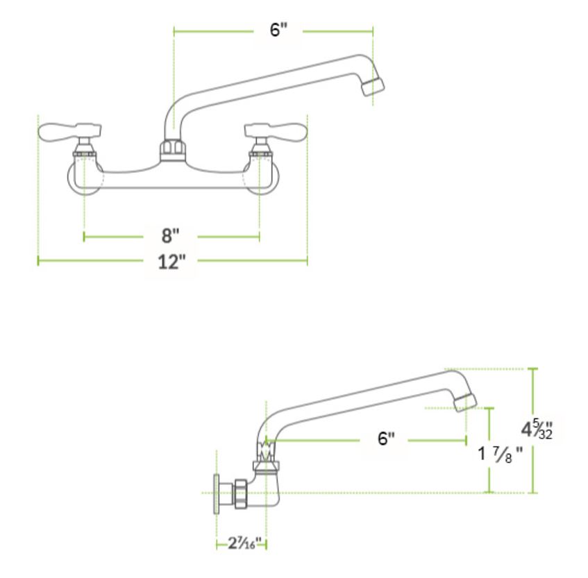 Compartment Sink 8″ on Center Faucet Taps with 6″ Spout for One Tub Sinks and Blender Station 39254