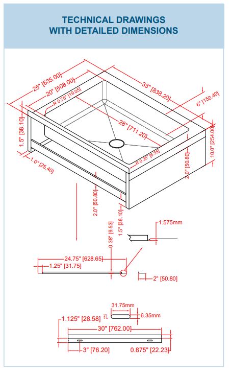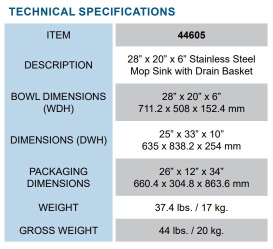 This floor mounted mop sink is designed to eliminate lifting of heavy mop buckets. It is made from high-quality 16-gauge 304 stainless steel for easy cleaning and lasting durability. Drain Pipe Size: ?˜ 2.36″ (Drain pipe excluded)