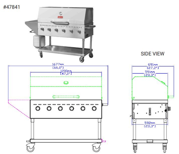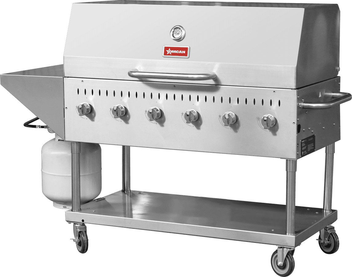 Stainless Steel Propane Outdoor BBQ Grill, 6 Burners, 96000BTU, Top And Side Shelf, 1 Roll Dome 47841 Features:
