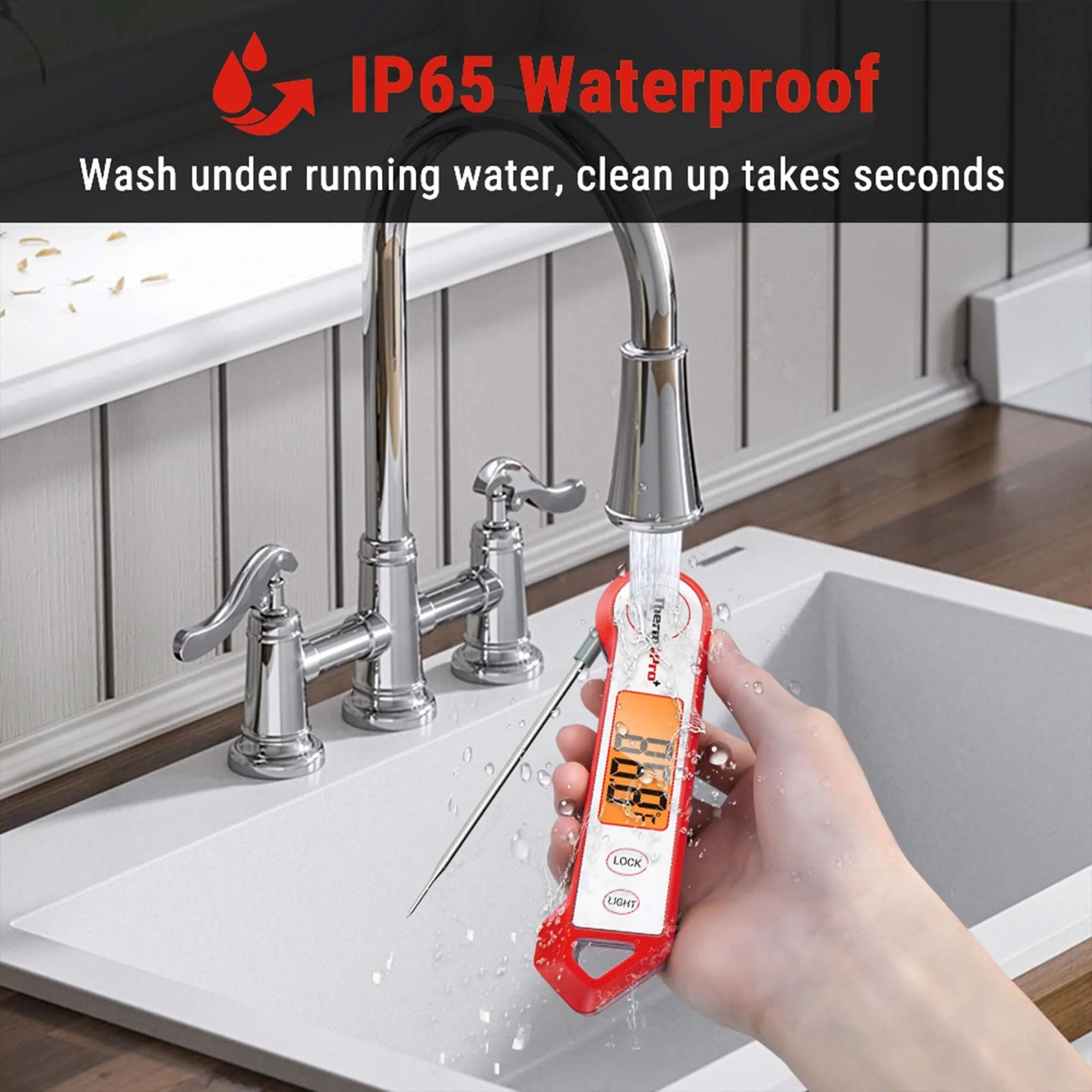 IP65 Waterproof Easy to clean the meat thermometers for grilling with probe under running water.