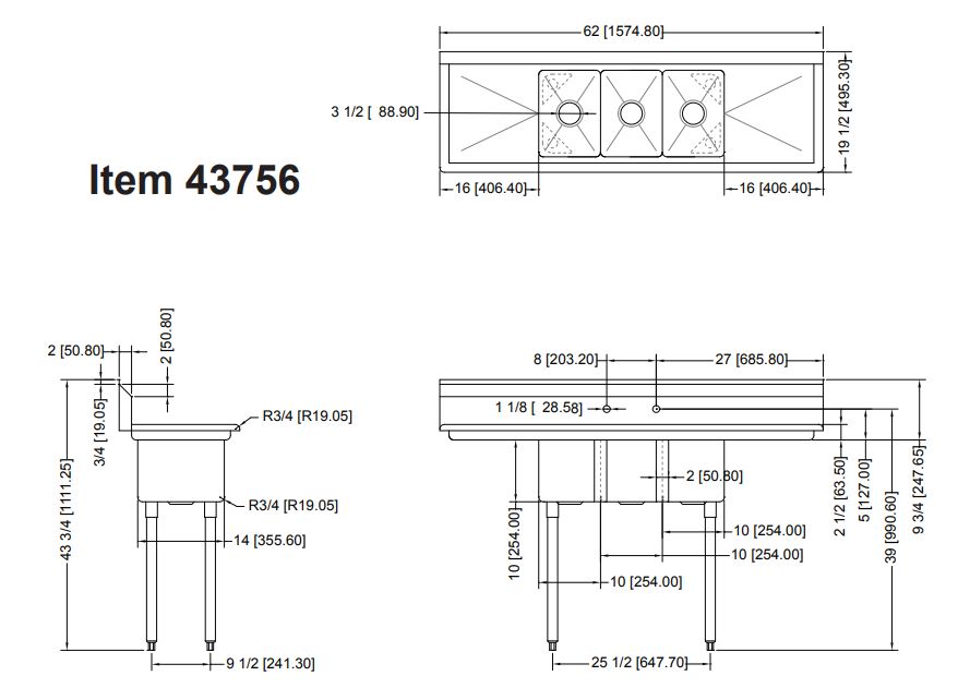 OVER-ALL DIMENSIONS (WDH): 62″ x 19.5″ x 43.75″