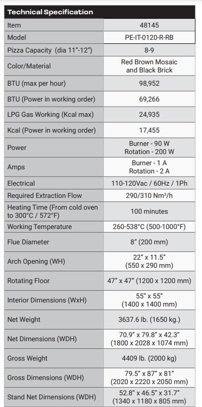 – SPITFIRE GAS BURNER is tailor-made to satisfy the baking requirements of the oven.