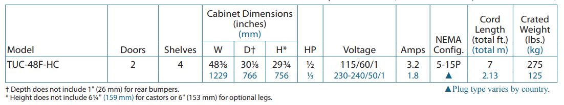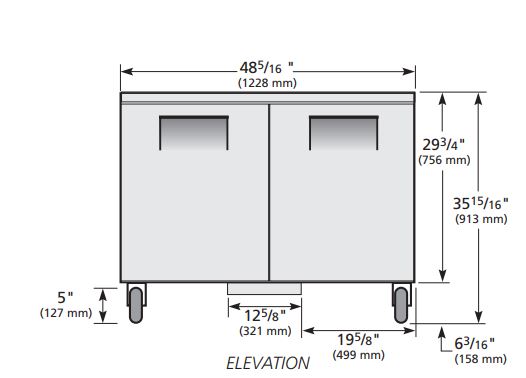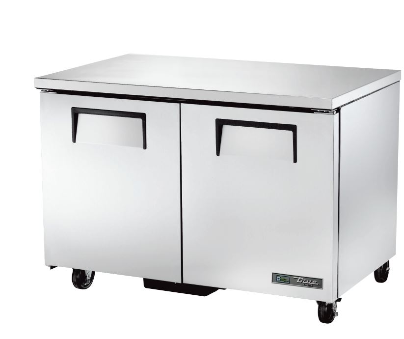 To ensure cold air stays inside, the doors close if opened less than 90 degrees, and past this point, the doors stay open, so products can be efficiently loaded and the interior can be quickly cleaned. Product is stored on four PVC-coated wire shelves, and if there are product spills, debris and liquids are not stuck in the corners because they are coved. Its aluminum interior liner and exterior stainless steel construction are durable to withstand heavy use. For cold-air retention, the True TUC-48F-HC undercounter freezer has polyurethane insulation that has been foamed in place.
