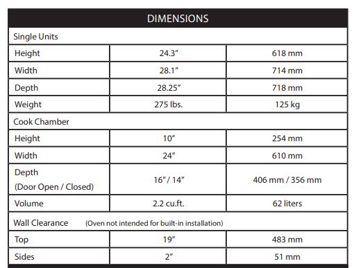 Cook Chamber Volume 2.2 cu.ft. | 62 liters