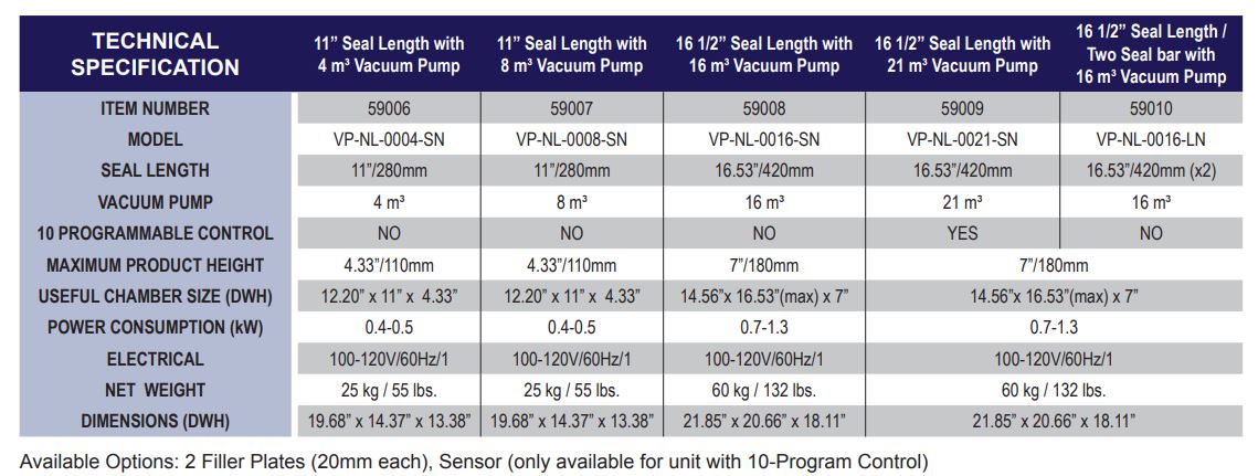 Our table top machines have all the quality engineering and build of our industrial vacuum machines. Available in 5 sizes and 8 sealing bar configurations. Please consult with an Omcan specialist to discuss which machine will best meet your needs.