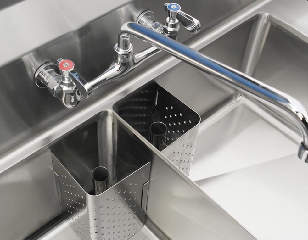 Two Tub Sink with 3.5″ Center Drain and No Drain Board 24″ x 24″ x 14″ 43791 Features