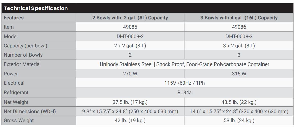 Capacity (per bowl): 2 x 2 gal. (8 L)