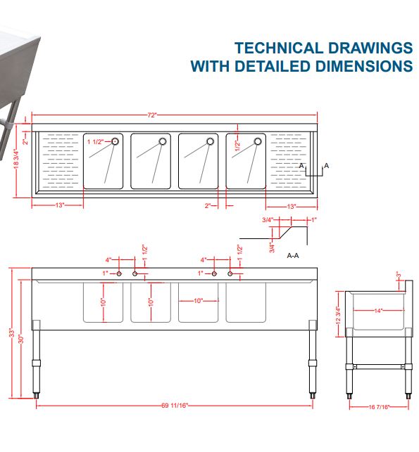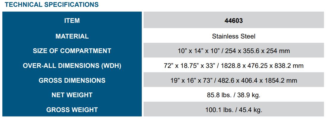 OVER-ALL DIMENSIONS (WDH): 72″ x 18.75″ x 33″