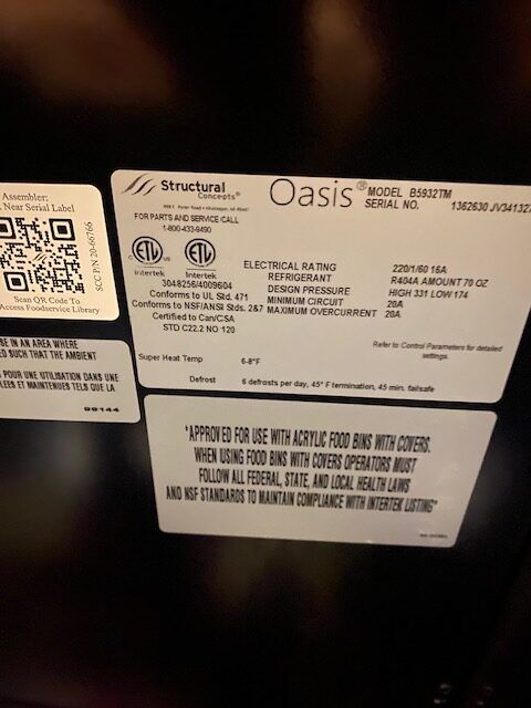 You are viewing a nicely used commercial 59″ wide open air cooler that is in excellent condition and works great. This is a Structural Concepts B5932TM model. It has a few minor scratches and includes everything from the factory. It measures 59-5/8″ W x 32-1/4″ D x 82-1/2″ T. Sells new for $28,000+. We also sell other new models and have financing options. Our Clearance Warehouse is located in the Foothills Industrial Park #5, 6613 – 44th Street SE, Calgary, AB. Open Monday to Friday 9am to 5pm.